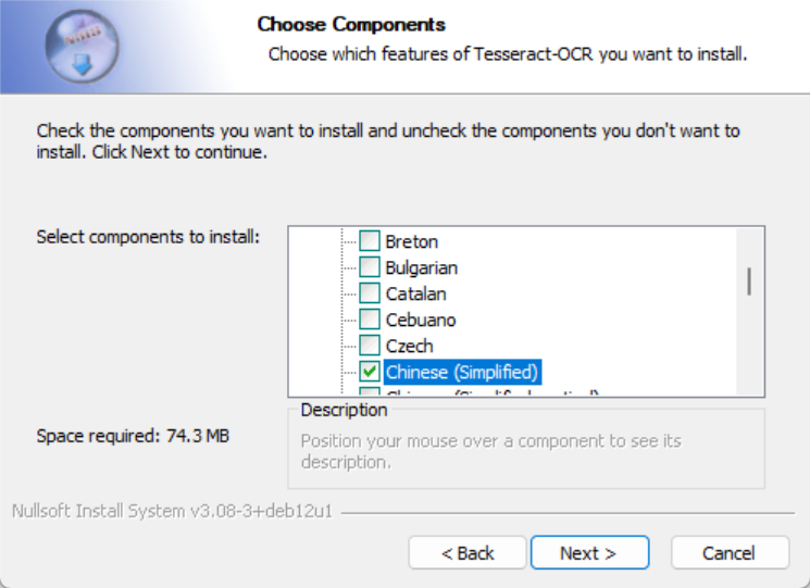 安装过程中可选择所需语言包: