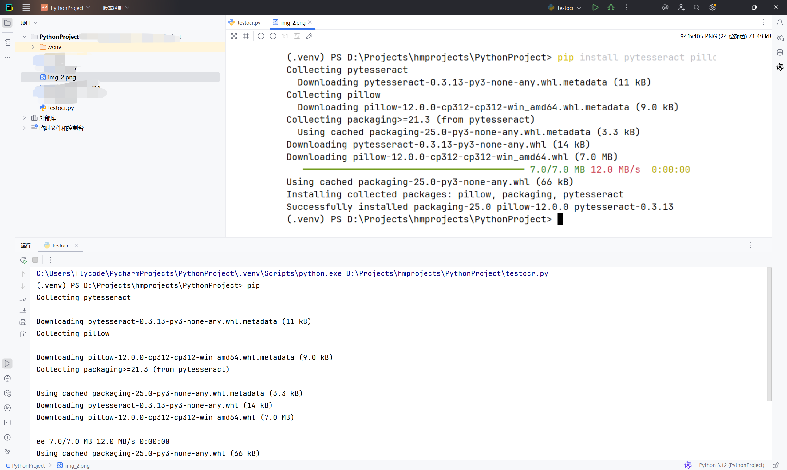 pip install pytesseract pillowpytesseract:Tesseract 的 Python 封装Pillow:图像处理与加载库